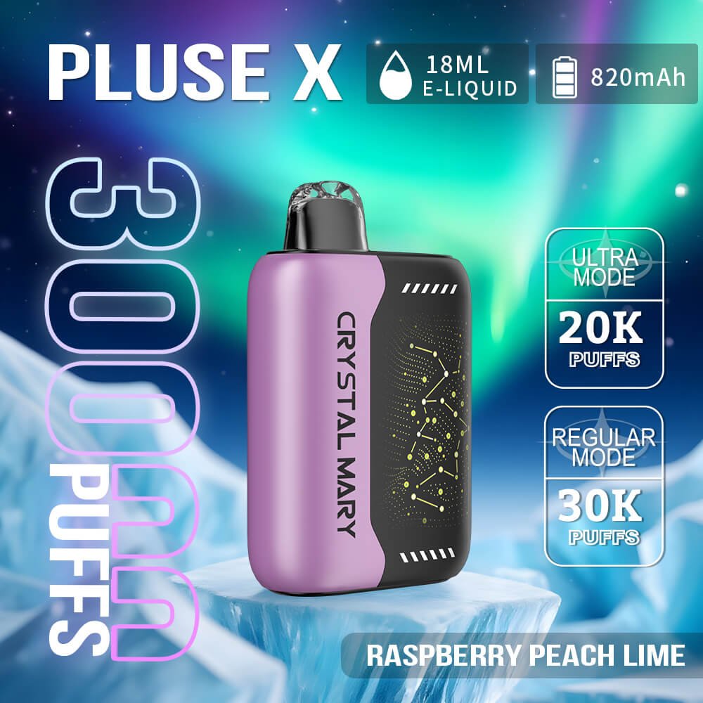 Crystal Mary Pulse X 30K offers up to 30,000 puffs with dual mesh coils and an 820mAh rechargeable battery. With a smart display, 3 modes, and child lock, it delivers smooth flavor and lasting performance.